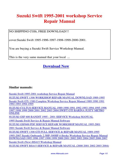 Read Online Suzuki Swift 1995-2001 workshop Service Repair Manual PDF Library Binding ManyBooks